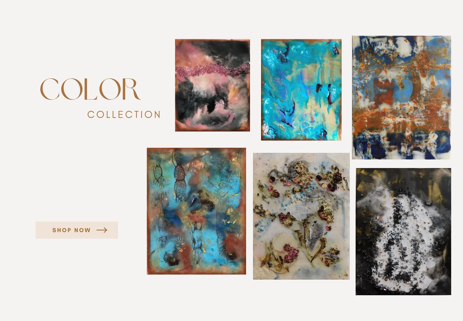 Expressive, abstract art created with beeswax, oil paints, and damar resin. Artworks rich in texture harmonize with existing decor elements, tying together colors and patterns creating a sense of coziness, warmth, and sophistication.
