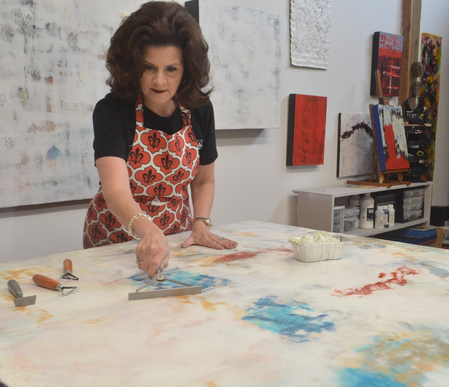 Expressive, abstract art created with beeswax, oil paints, and damar resin. Artworks rich in texture harmonize with existing decor elements, tying together colors and patterns creating a sense of coziness, warmth, and sophistication.